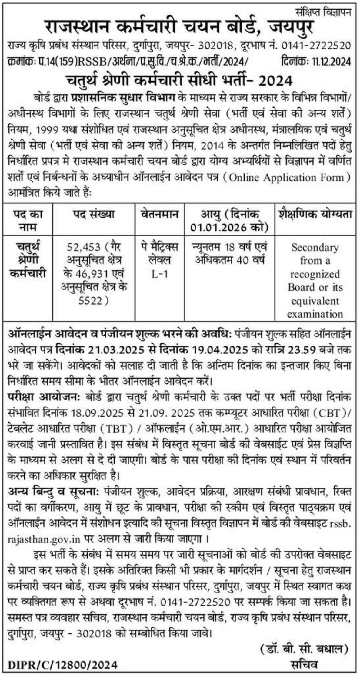 RSMSSB Group D Recruitment 2024 : Vacancy Details |